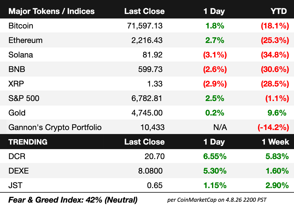 Click here to learn more about the Gannon’s portfolios and subscribe to the strategies on Autopilot.* Since inception (7/7/25), Gannon’s Crypto Portfolio is up +4.3%