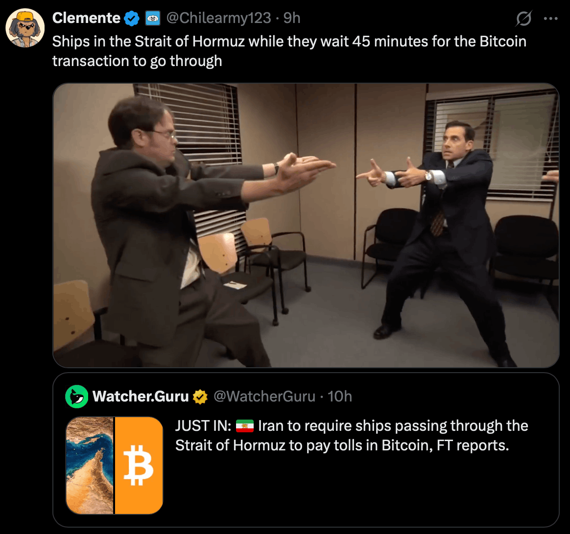 Iran wants Bitcoin payments from oil ships seeking Hormuz passage (DC)