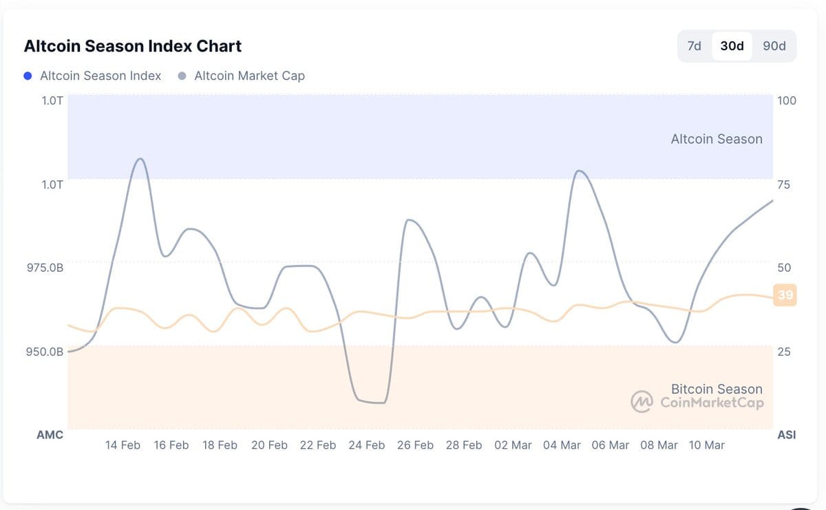 "Altcoin season" social media mentions at multi-year lows
