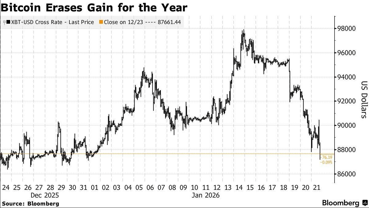 Bitcoin pulls back and erases all 2026 gains