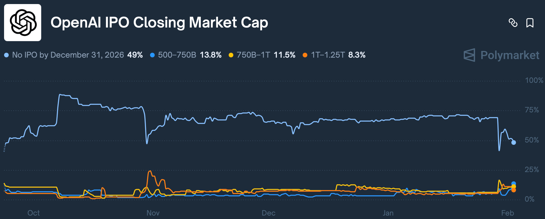 Bettors on Polymarket are predicting OpenAI IPO closing market cap?