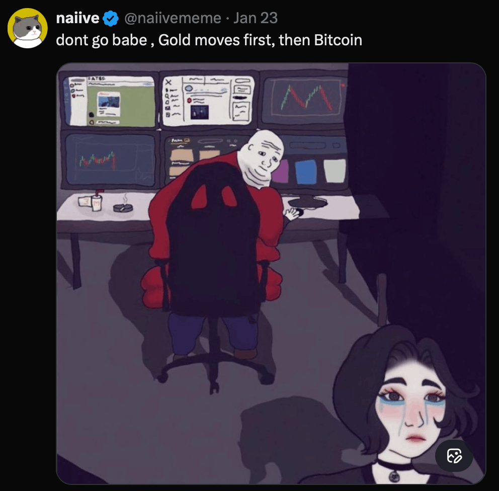 Gold surged past $5,100, eclipsing crypto in the macro trade as retail rotated into traditional safe havens; silver also hovered near record levels
