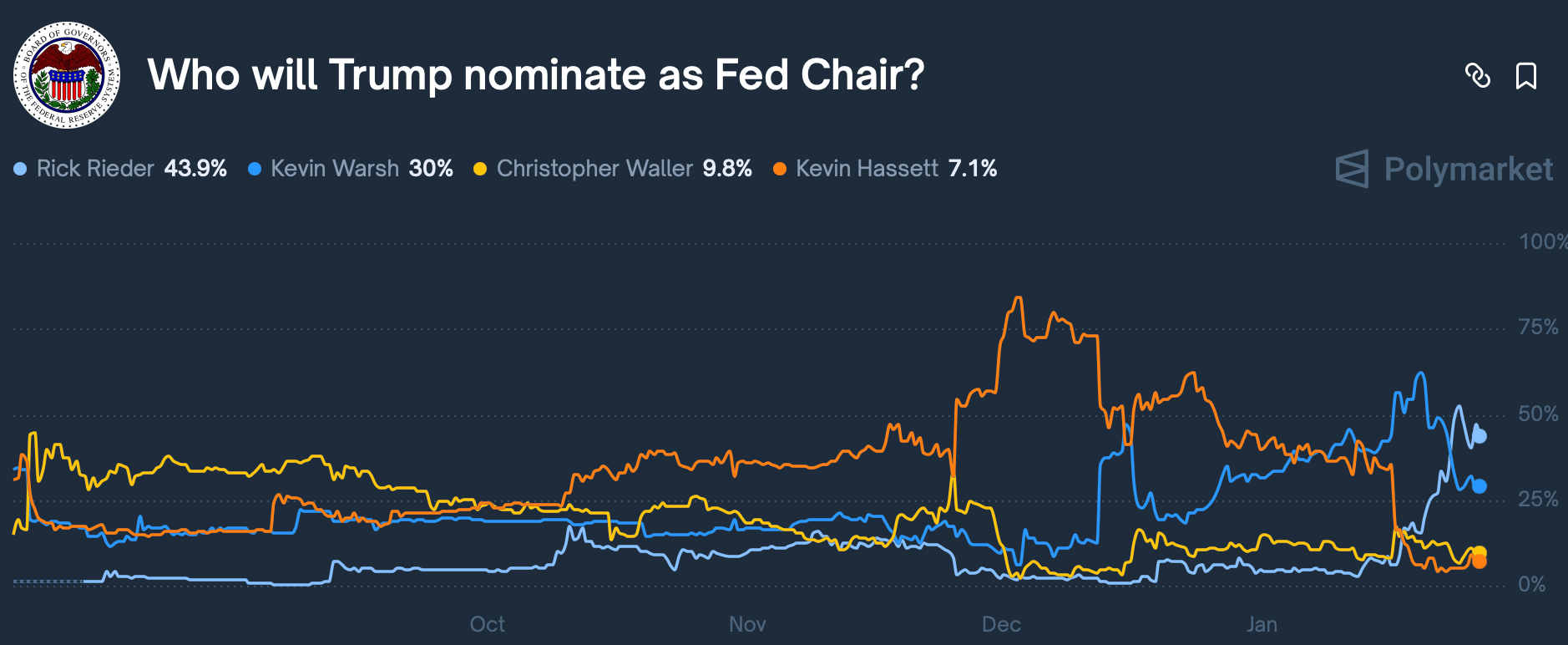Bettors on Polymarket are predicting who will Trump nominate as Fed Chair?