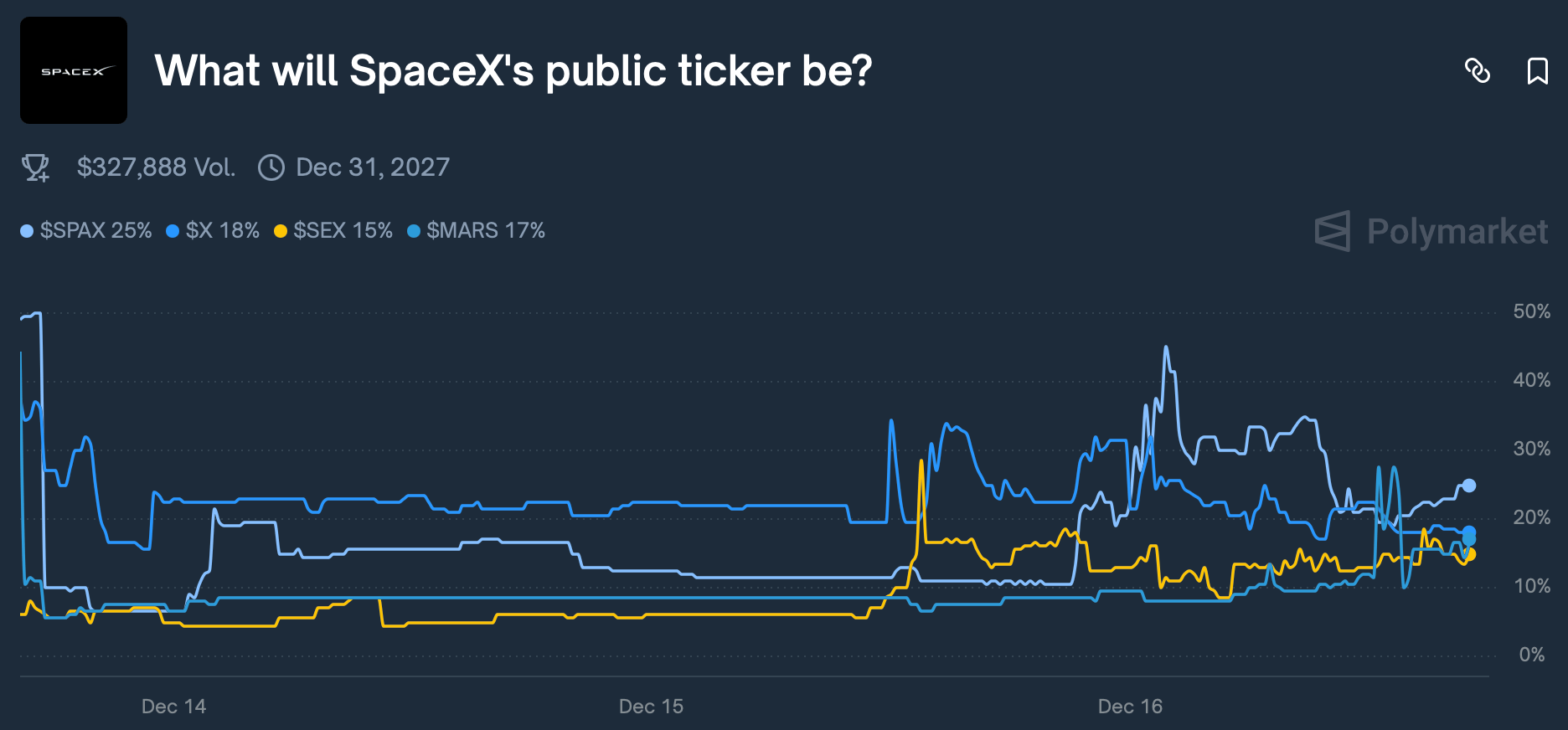 Bettors on Polymarket are predicting what will SpaceX’s public ticker be?