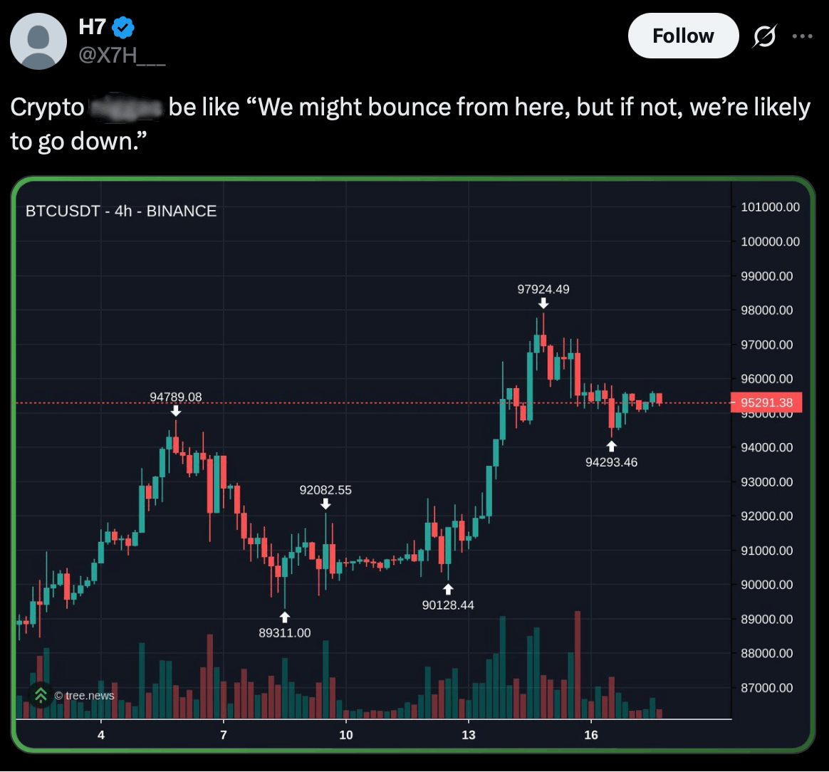 BTC pulled back toward $93K, swinging sharply on Senate delays and escalating trade-war fears