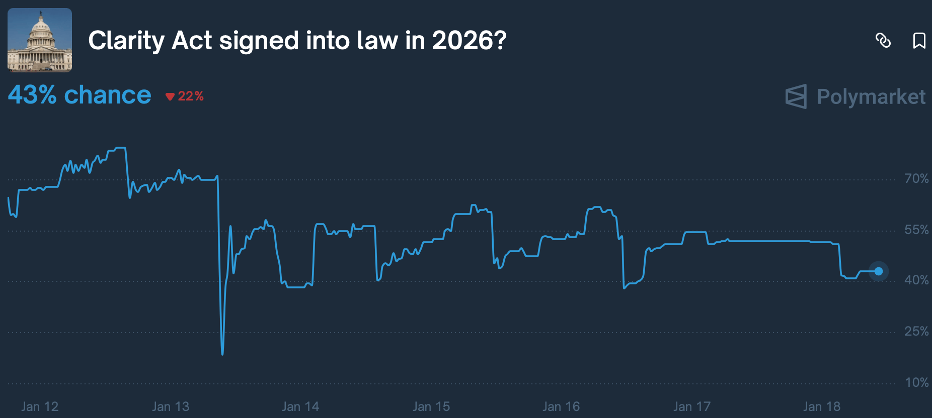 Bettors on Polymarket are predicting Clarity Act signed into law in 2026?