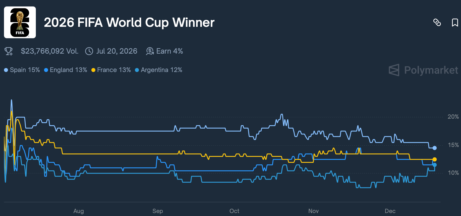 Bettors on Polymarket are predicting 2026 FIFA World Cup winner?