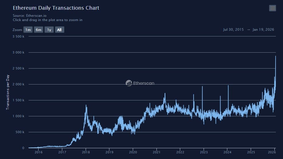 Ethereum daily transactions hit a new all time high