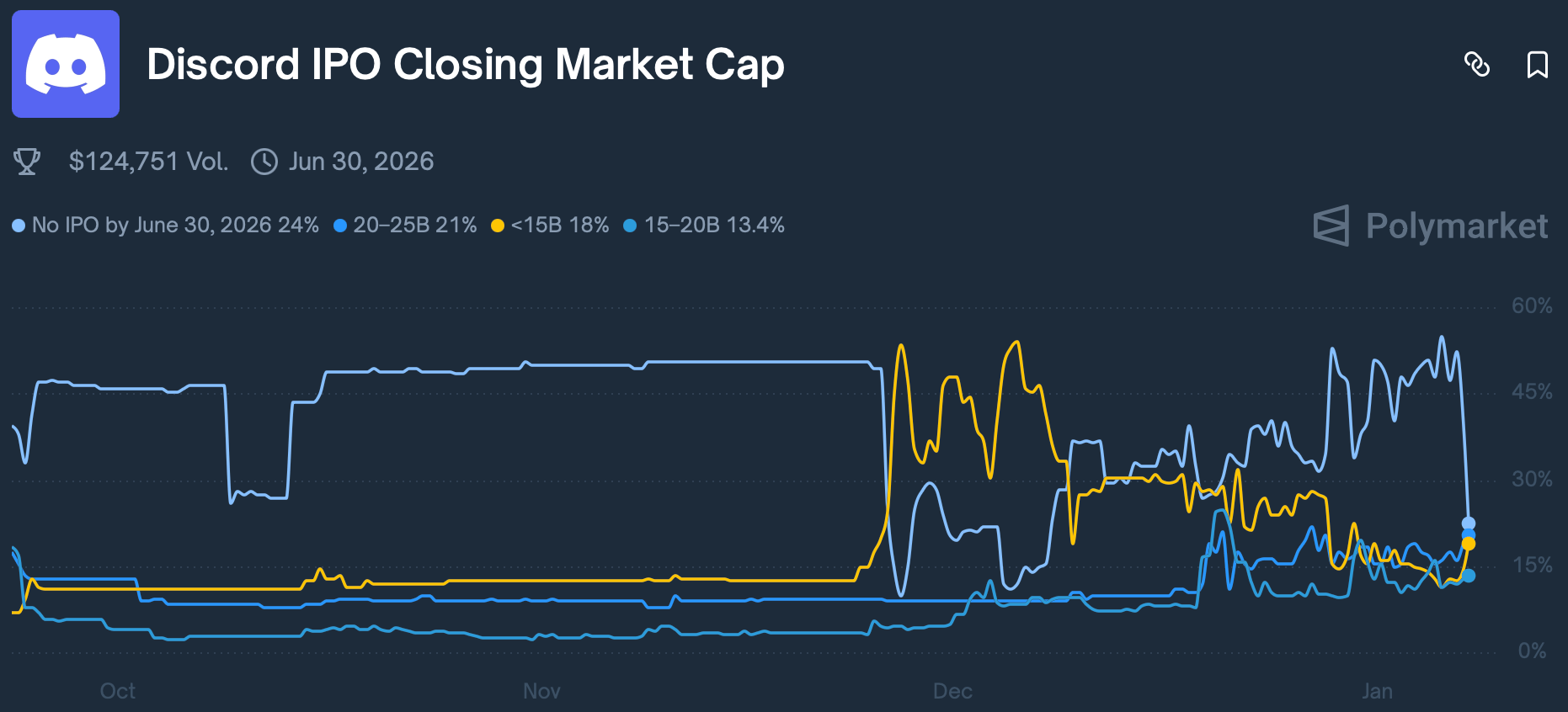 Bettors on Polymarket are predicting Discord IPO closing market cap?