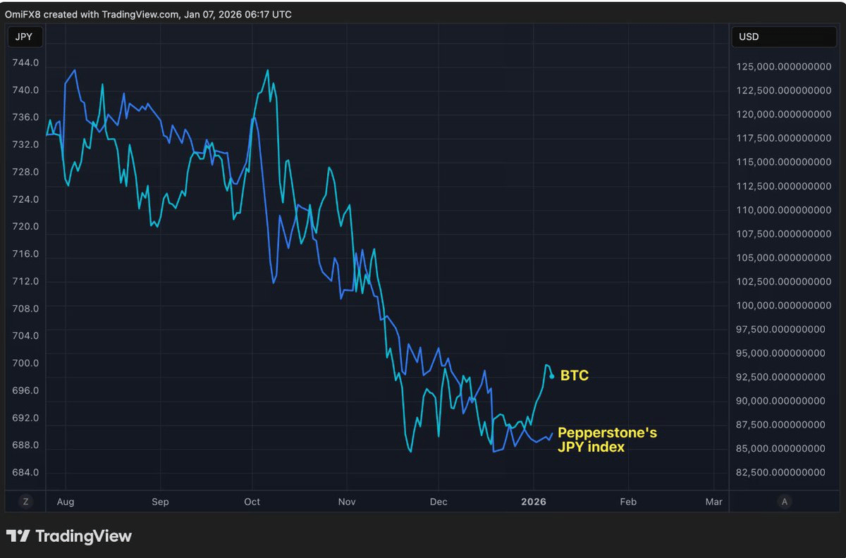 Bitcoin’s correlation with the Japanese Yen hits record high