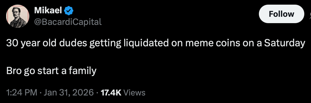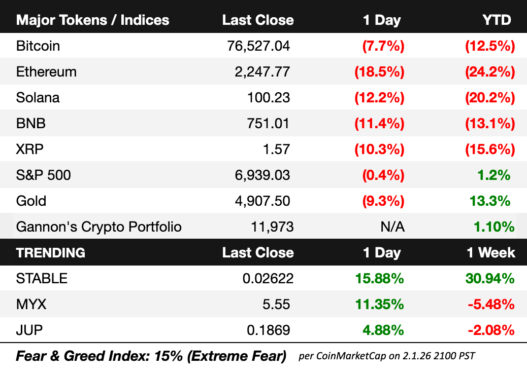 Overall, a broad risk-off unwind across crypto, metals, and equities drove forced selling